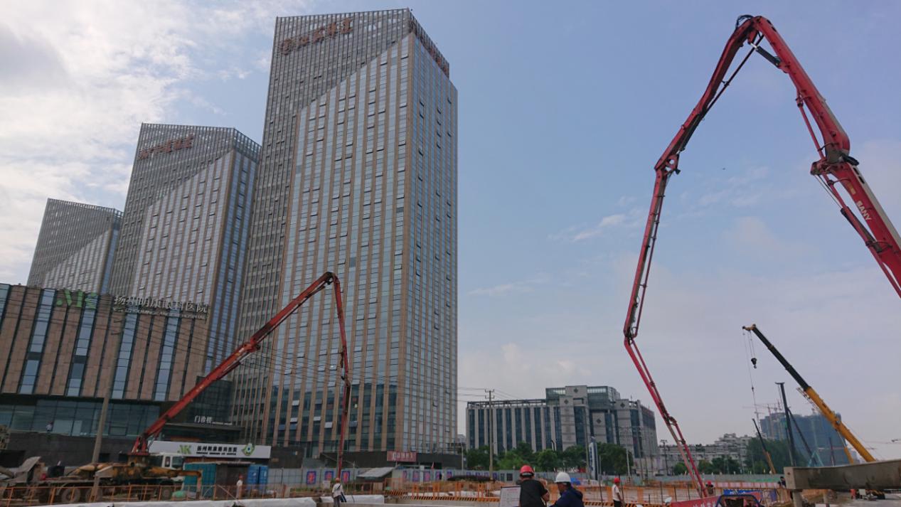 15時(shí)30分,第一輛混凝土車在文昌路南側(cè)敞開段施工現(xiàn)場(chǎng)外等候;15時(shí)40分,混凝土坍落度實(shí)驗(yàn)開始;15時(shí)43分,隨著一聲響亮的信號(hào),兩輛泵車輸送管同時(shí)就位,文昌路隧道首段底板正式澆筑……