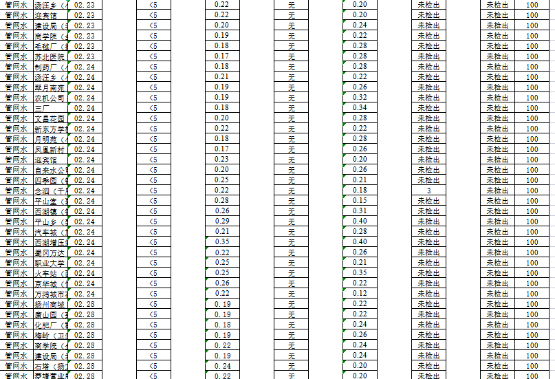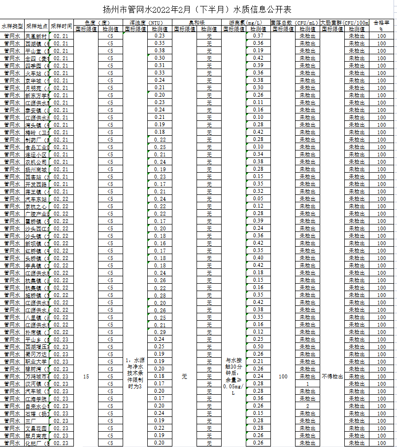 揚州市管網水2022年2月(下半月)水質信息公開表