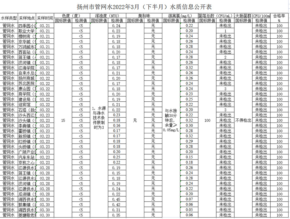 江蘇長江水務股份有限公司出廠水水質報告 ( 2022 年 03月 )