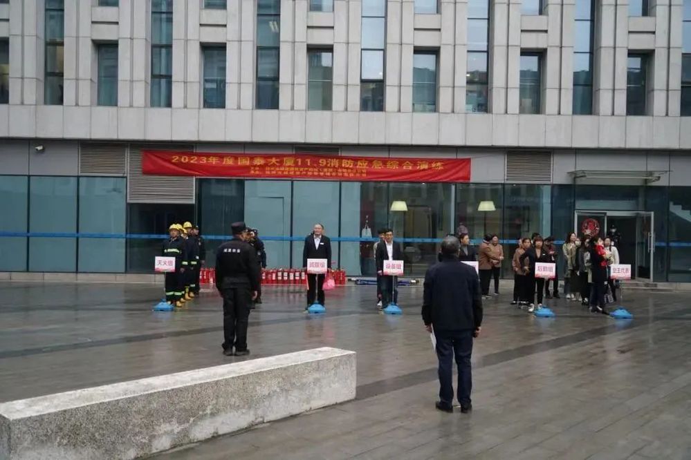 在消防疏散應急演練環節,演練人員模擬國泰大廈發生火災,開展了值班人員確認火情、初期滅火、人員疏散逃生、報警和引接消防員等應急演練流程。同時,邗江區消防大隊在內街廣場開展了消防滅火器的使用培訓,職工、物業管理、業主代表等人員參與了滅火器使用實操。