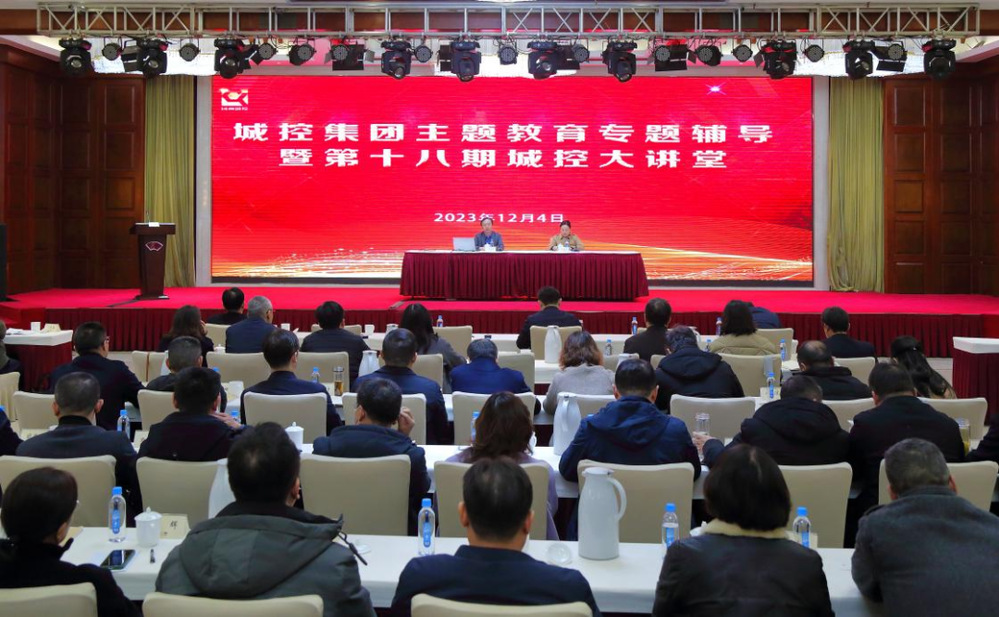 12月4日上午,城控集團在街南書屋國學館舉辦主題教育專題輔導暨第十八期“城控大講堂”,集團黨委書記、董事長張思忠及領導班子成員出席活動,集團機關部室全體人員、集團委派任職干部,各子公司領導班子成員、基層黨支部書記及干部職工代表共240余人參加活動。集團黨委副書記、副董事長、總經(jīng)理潘涵主持大講堂活動。
