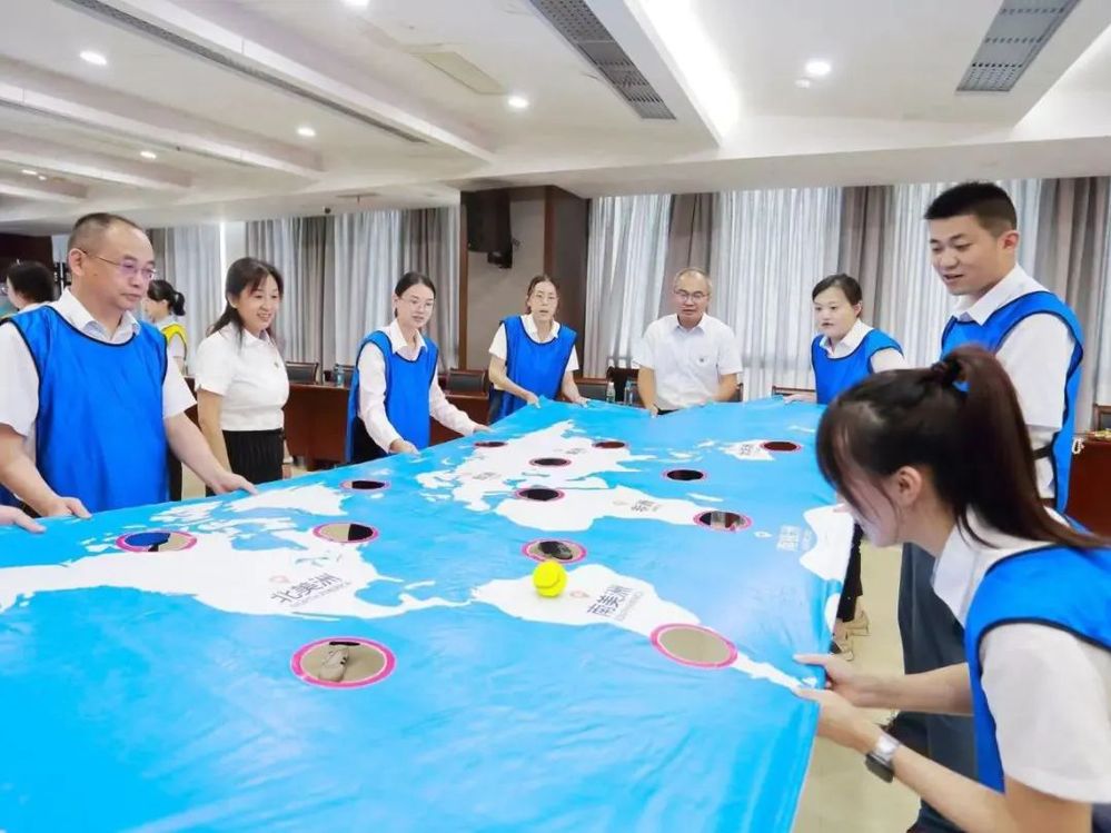 此次共建活動在歡快輕松的氛圍中進行,為充分調動大家的參與熱情,在主持人熱情地引導下,大家首先進行了熱身。熱身活動后,揚州中燃公司和三家銀行組建三支團隊依次開展“環游世界八十天”、“達芬奇密碼”、“聯合攻城”等一系列團隊協作競賽。大家在競賽互動中不斷磨合,增強了彼此之間的信任感和團隊凝聚力。“聯合攻城”作為競賽環節的最后一個項目,將現場的氣氛推到一個高潮。“聯合攻城”需要隊員們同時操控手中的繩子,利用三角形的鉤子,將現場的八塊積木堆積成一個柱子,堆積過程中手不可觸碰積木,且柱子不倒塌視為完成競賽,用時最少的隊伍獲勝。這項競賽既考驗了隊員們之間的團隊協作能力,又考驗了每一位隊員的心理素質和應對能力,大家在團結緊張活潑的氣氛中感受著充滿挑戰競賽過程和完成項目的喜悅。