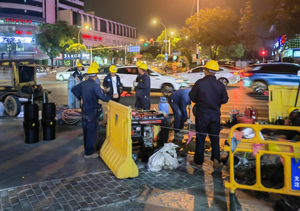 此次改造工程任務(wù)艱巨,停氣范圍廣、焊接工作量大,對施工組織和技術(shù)保障提出了極高要求。為了將施工對市民生活和城市交通的影響降至最低,揚州中燃精心策劃,組織了兩支經(jīng)驗豐富的施工隊伍同時施工,保障施工流程順暢高效進行。5月28日21點,當(dāng)城市逐漸進入夢鄉(xiāng),施工人員們精神抖擻地投入到緊張的施工中。他們克服夜間作業(yè)視線差、體力消耗大等困難,嚴(yán)格按照施工規(guī)范和安全標(biāo)準(zhǔn),爭分奪秒推進焊接、新舊管道切換等工作。經(jīng)過全體施工人員的不懈努力,至次日清晨6點完成改造、恢復(fù)供氣,確保周邊居民能夠正常使用燃?xì)狻?/p>