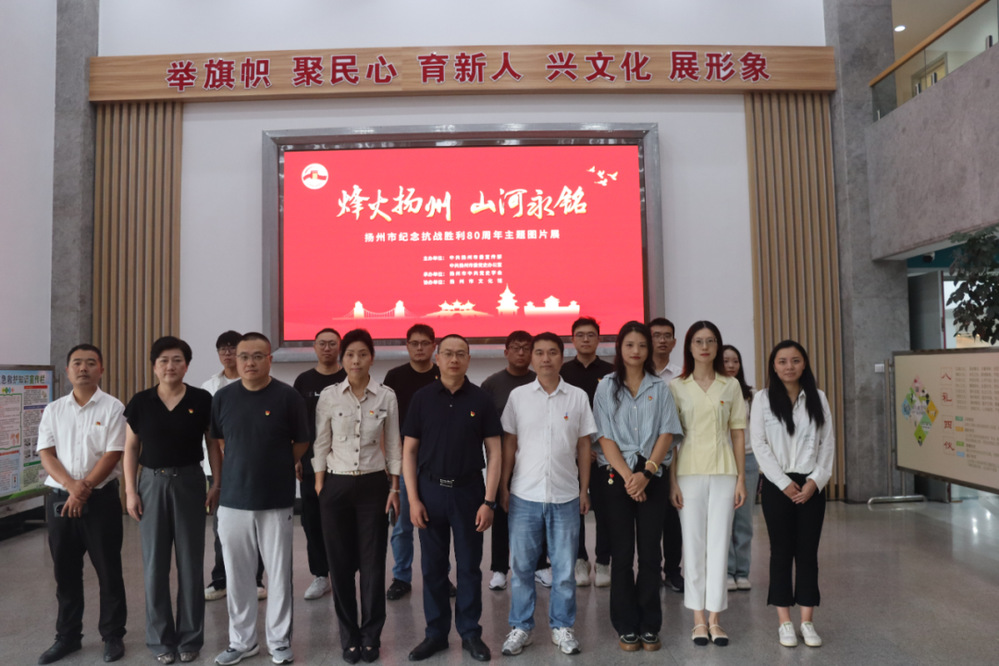 為深入開展愛國主義教育和革命傳統教育,紀念中國人民抗日戰爭暨世界反法西斯戰爭勝利80周年,9月22日下午,潔源環境黨總支組織40余名黨員及積極分子,前往揚州市文化館,參觀“烽火揚州,山河永銘”主題圖片展。