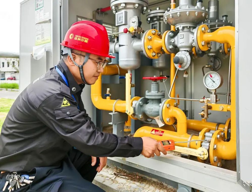 晨光熹微,韋煒已穿戴好防靜電工裝、安全帽,將10多斤重的工具包裝上電動(dòng)車,再對(duì)照前一天的日志規(guī)劃路線,整裝待發(fā)。他負(fù)責(zé)的巡線區(qū)域覆蓋廣陵區(qū)李典鎮(zhèn)、頭橋鎮(zhèn)全域,巡檢管線總長(zhǎng)近60公里,涵蓋42個(gè)調(diào)壓箱(器),每天步行2萬(wàn)步是他的工作常態(tài)。